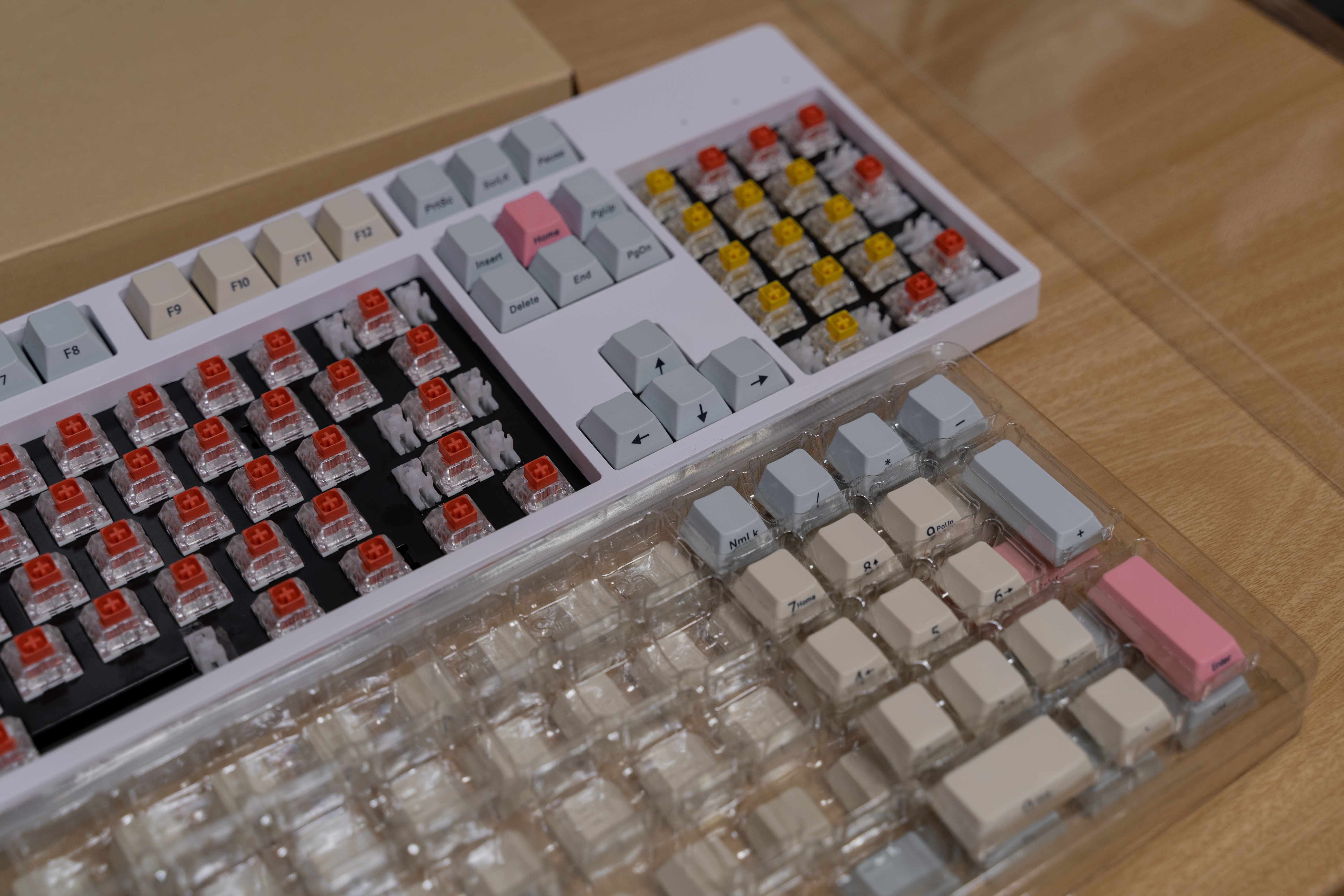 AK89 DIY KIT에 카일 박스 오렌지축과 황축을 물렸습니다. 키패드 쪽에는 전체적으로 황축을 달아두었고 좌측 나머지 배열에는 오렌지축을 장착했는데요? 키패드 쪽의 경우 필자가 하는 게임의 특성상(카트라이더)좀 더 익숙한 키를 달아둬야 하기 때문입니다. 메인 스위치로 오렌지 축을 선택하게 된 이유는 지난번에 얘기했던 경험해보지 못한 넌클릭 스위치이기 때문이 가장 큰 이유인데요? 실제로 타건했을 때의 느낌은 걸림이 어느 정도 있어 구분감이 꽤 있는 스위치인 것을 알 수 있었습니다. 넌클릭 중에서도 구분감이 상당히 큰 편에 속하고 이전에 리뷰했던 오레오 축 정도의 구분감은 아니지만 오레오 축, 카일 박스 갈축 그 사이에 있는 듯한 느낌입니다. 특히 굉장히 특이한 점이 키를 빠르게 타건하고 있을 때는 서걱임이 거의 느껴지지 않는 편이지만, 미세하게 누르고 이따 보면 묘한 서걱임이 느껴집니다. 처음에는 살살 느껴지다 이후 빨리듯이 들어가는 느낌이 이 스위치의 매력이라고 생각이 드는 듯합니다. 기변증이 심하다 보니 해당 스위치를 얼마나 오래 가져갈지는 모르겠으나 적어도 사용 한 달 차 정도되는 상태에서는 꽤 만족스럽게 느껴지는 듯합니다.