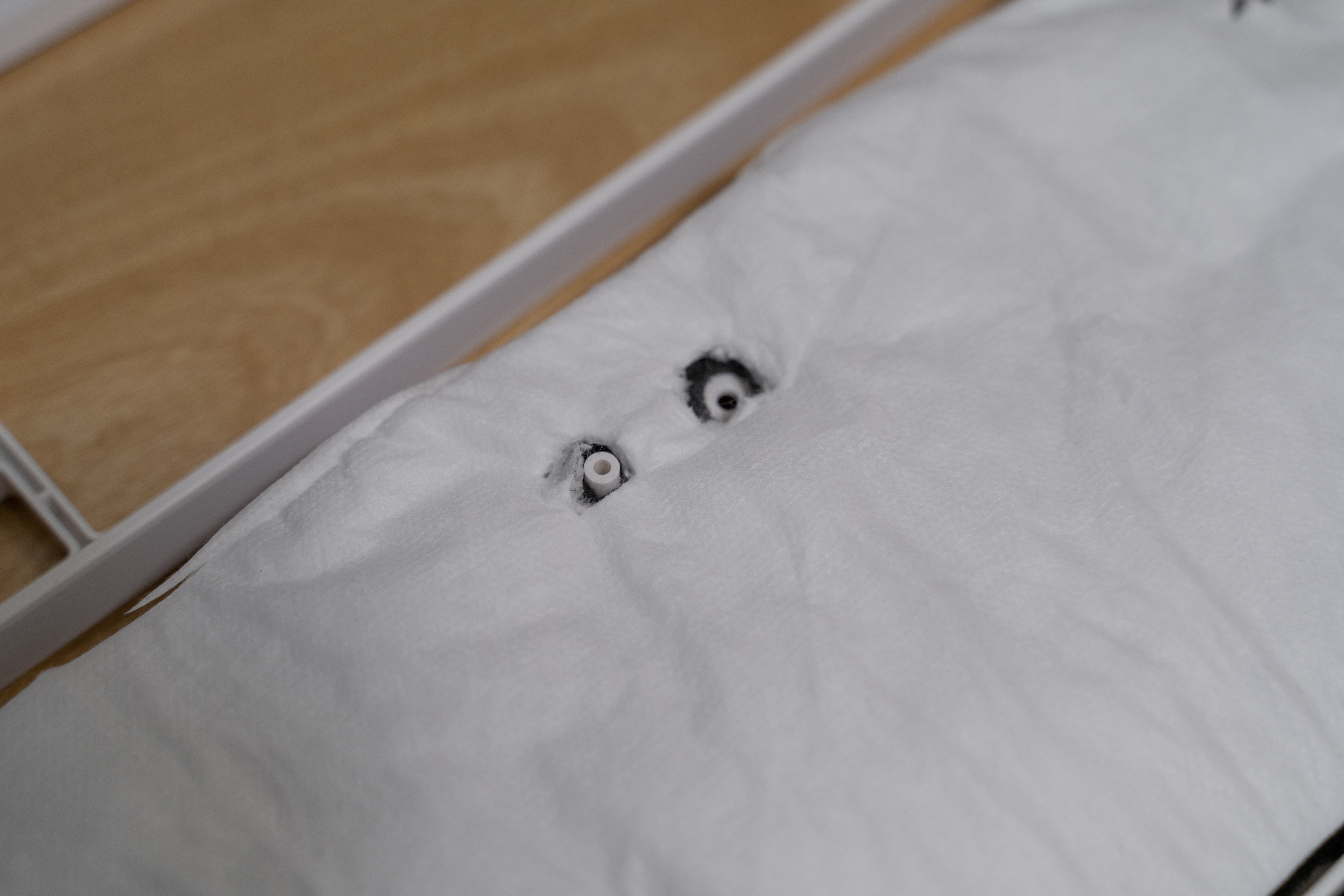 하판에서 적출한 흡음재의 사이즈에 맞춰서 신슐레이터(교체할 흡음재)를 성형해 줍니다.